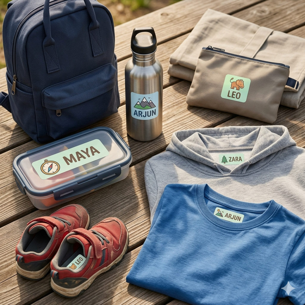 Whether it’s summer camp, school trips, or family travel, our Camp & Travel Kids Name Labels Combo Pack is designed to keep your child’s belongings safe, organized, and easy to identify.