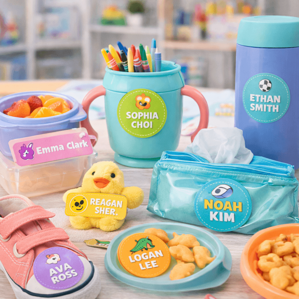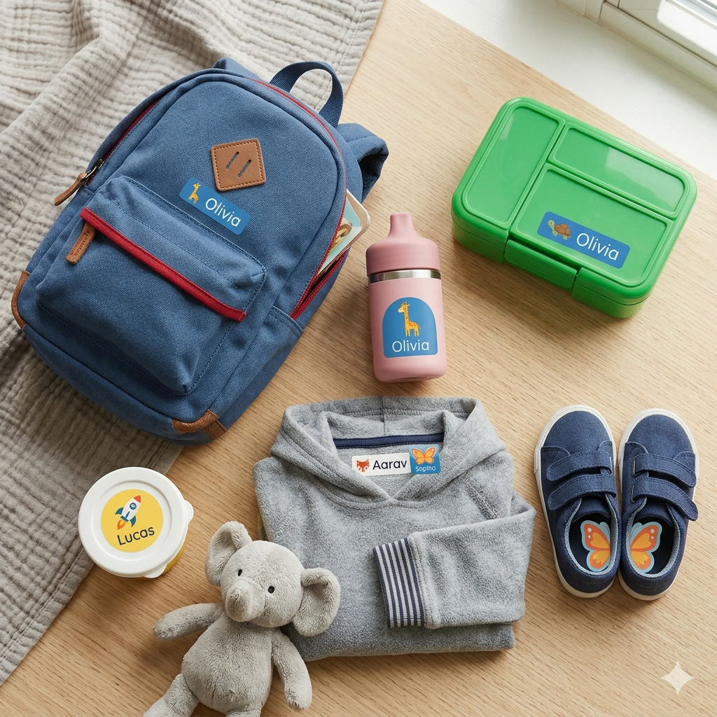 From water bottles and lunch containers to clothing and shoes, this complete labeling solution helps prevent lost items and mix-ups, giving parents peace of mind every day.